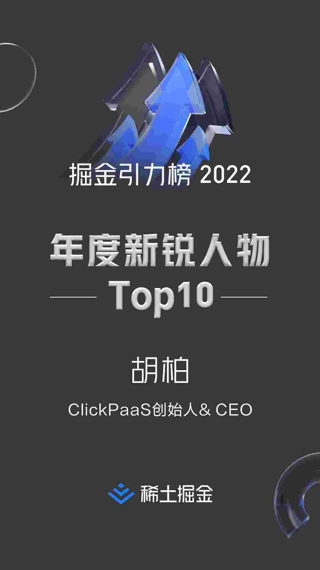 稀土掘金社区首届年度10大新锐人物榜单揭晓——EBPAY创始人、、、、、、、、、、、CEO胡柏实力登榜