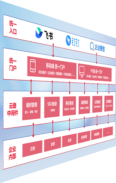 对协作平台提供支持服务,,支持企业应用与协作平台对接,,,包含组织同步、、消息集成、、待办集成等。。支持目前主流的协作平台:钉钉、、、企微和飞书。。